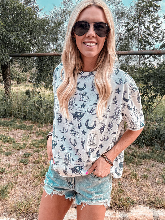 Urban Cowboy Texas Cropped Tee (Charcoal)